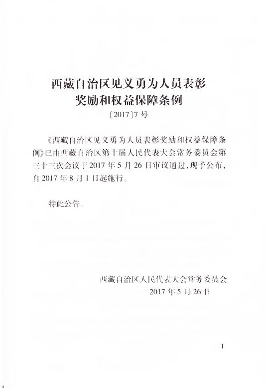 西藏自治区见义勇为人员表彰奖励和权益保障条例