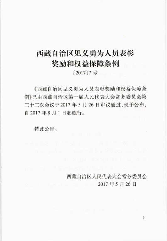 西藏自治区见义勇为人员表彰奖励和权益保障条例