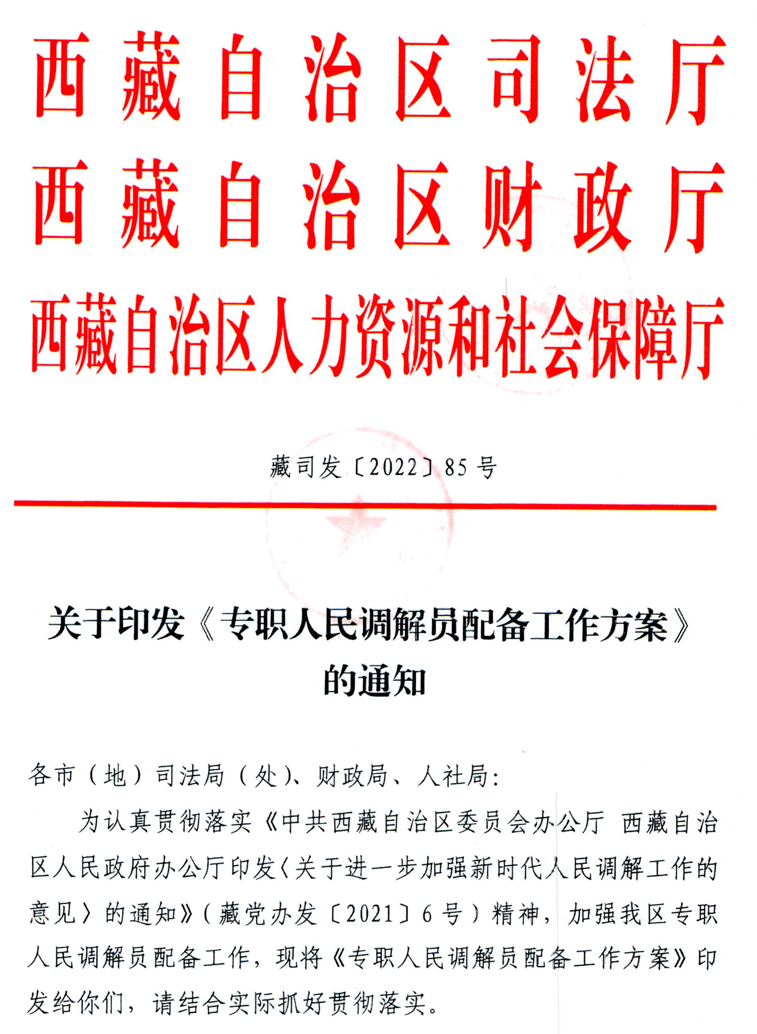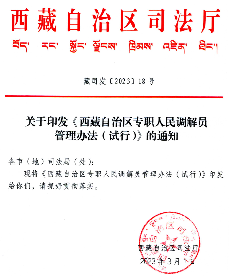 西藏自治区司法厅出台《西藏自治区专职人民调解员管理办法(试行)》