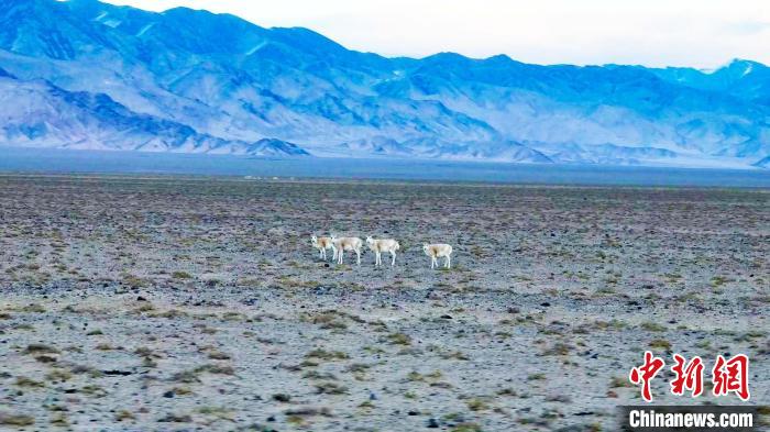 藏羚羊群停步驻足,好奇地打量着周边的环境。 阿尔金山国家级自然保护区管理局提供