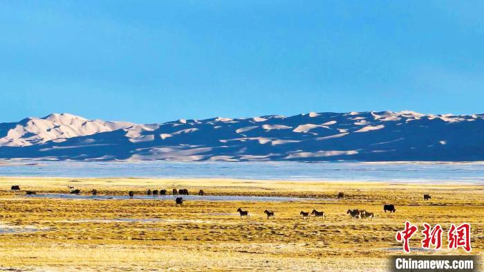 中新网乌鲁木齐2月10日电(王小军 刘雨珊)连日来,随着气温不断转暖,新疆巴州境内阿尔金山国家级自然保护区内,和煦的春风为沉默一冬的高原带来蓬勃生机,野牦牛、藏羚羊、藏野驴等珍稀野生动物在一望无际的高原上悠闲漫步,高原宝库呈现出一派蓬勃的生机。