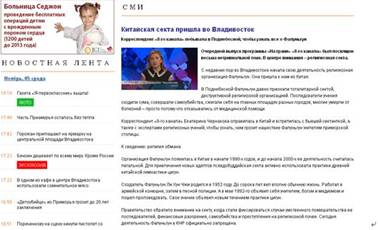 俄罗斯“第八频道”电视台是俄罗斯主流电视台之一。2014年11月4日“第八频道”在固定栏目《边缘》里探讨了一个非常特别的话题——邪教法轮功。该电视台记者叶卡捷琳娜·切尔那科娃为此专程来到中国,先后走访了以前法轮功的信徒、宗教学专家和绥芬河地区的警察。2014年11月4日,俄罗斯滨海边疆区首府符拉迪沃斯托克市(也称海参崴)地方网站Vladnews.ru登载该节目的整理文本。她们一致同意宗教只是法轮功用于欺骗他人的幌子,并呼吁“第八频道”的观众和网站网友远离法轮功及其成员,因为它是一个对社会极其有害的组织。
