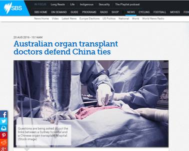 2016年8月19日,据澳大利亚媒体“专门报道”网(SBS)报道,国际移植协会现主席菲力浦·康而尔博士(Philip O’Connell)和前主席杰里米?查普曼教授(Jeremy Chapman),在第26届国际移植协会香港年会开会期间,反驳了法轮功活摘指控等相关指责声音。查普曼教授指出他先前就已经质疑那些调查人员所提供的数字,他告诉澳媒体SBS说,法轮功极尽所能利用香港年会,“凸显了它的信徒所面临的困境”。