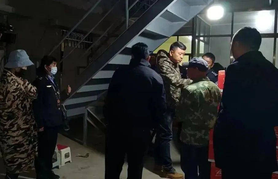 执法人员对涉嫌制假售假的生产加工点进行摸排。